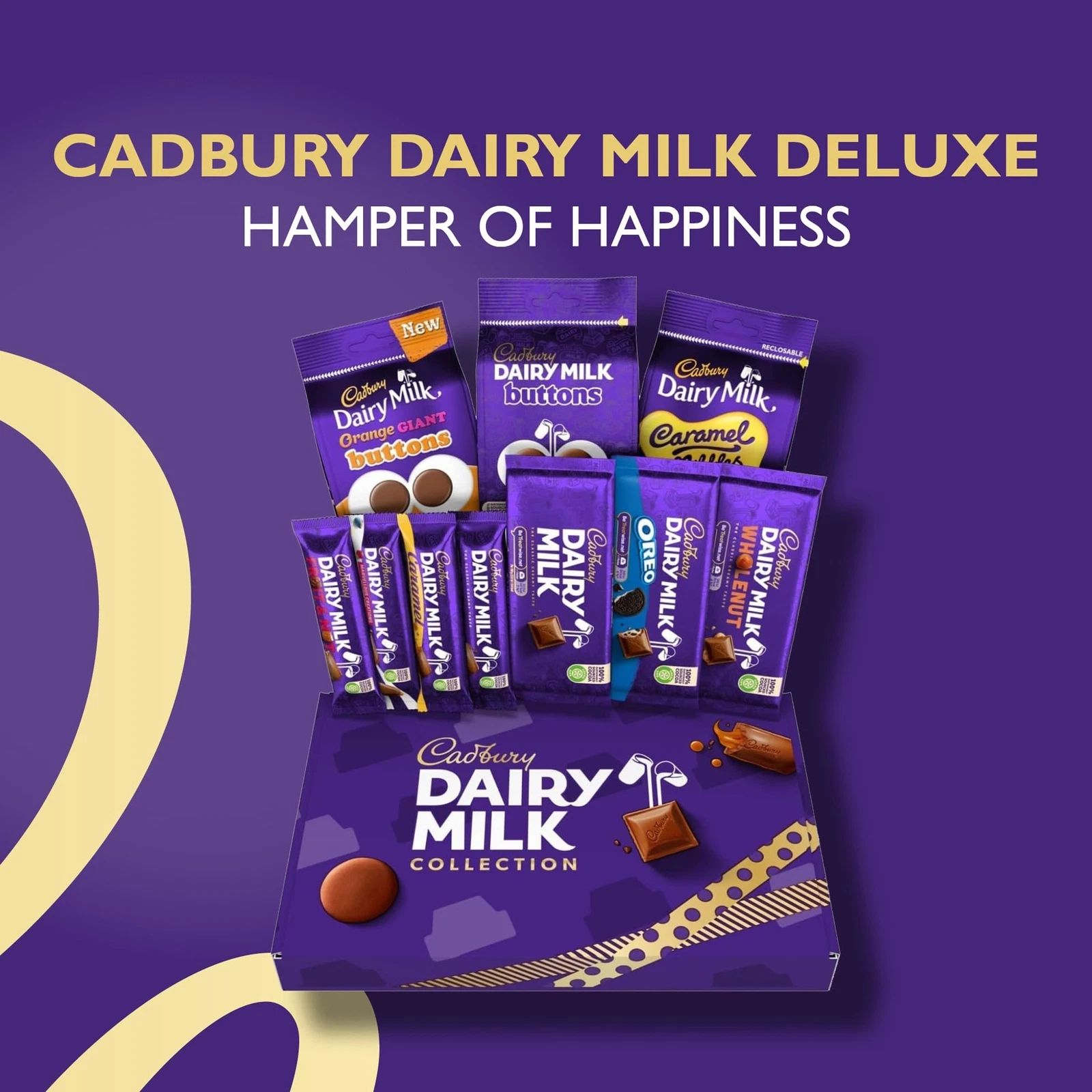 - LUXURY SELECTION: Indulge in a 1.04 kg deluxe hamper filled with Cadbury Dairy Milk favourites for gifting or personal indulgence